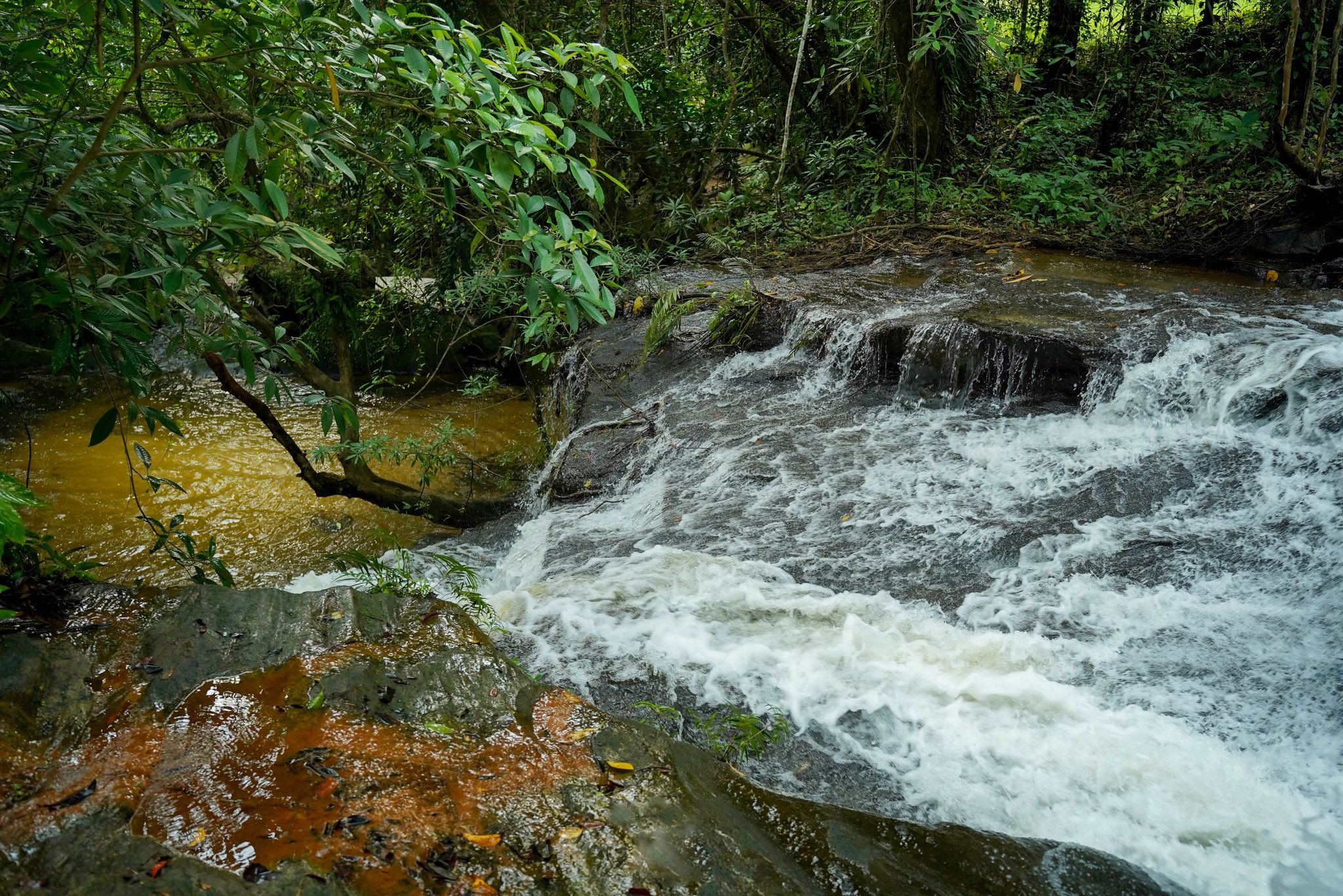 After breakfast, the trek continues deeper into the wilderness of Phnom Kulen National Park. Visitors explore the ancient elephant sculptures at Srah Damrei and discover the mysterious Bat Cave. Later, they relax and swim at the beautiful Phnom Kulen Waterfall before returning to the campsite for dinner and another night in the jungle.