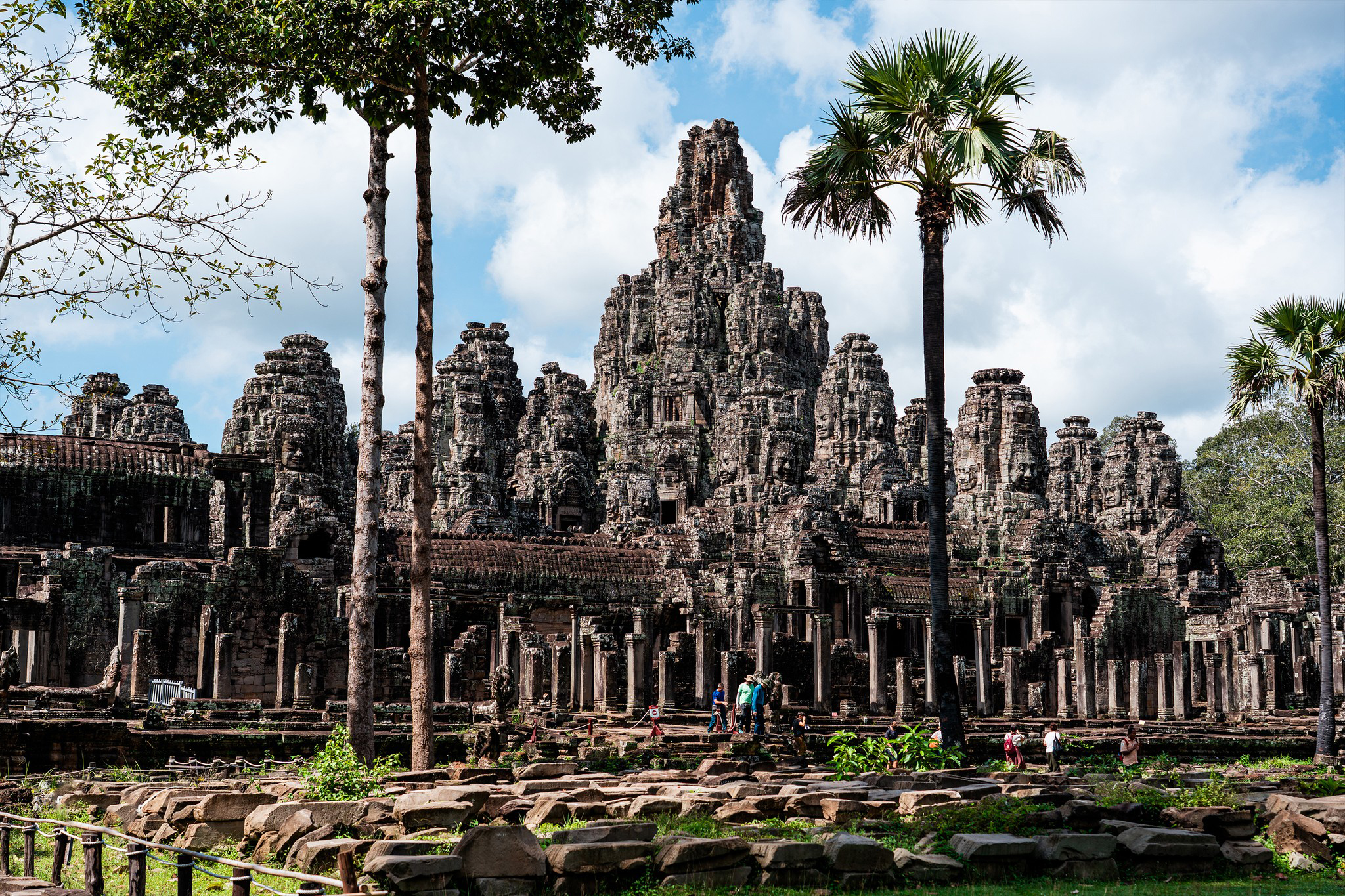 Today, you step into the heart of the Khmer Empire with a full-day exploration of the legendary temples of Angkor Archaeological Park. Your journey begins at the grand South Gate of Angkor Thom, where towering stone faces welcome you into the ancient city. Inside, you visit the remarkable Bayon Temple, famous for its many serene and smiling faces carved into stone.